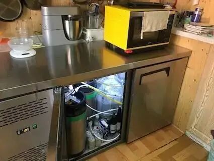 咖啡儲存在冰櫃內,低溫下可以延長風味期。通過管道輸出到 Tap 上,如果有一台管道製冷機,效果會更完美。