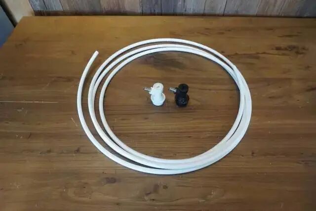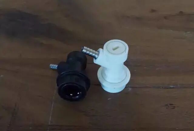 Keg快捷頭分為進氣的白色和出水的黑色,可以使用3分PE管直接,中間安裝一個快接插頭,方便拆卸清洗。