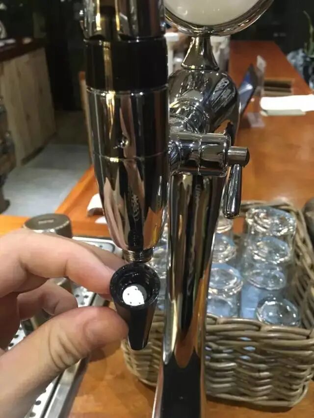 氮氣啤酒有一種特製的酒頭,秘密在裡面的金屬篩片,它能使氮氣充分的激發,形成更多綿密的泡沫。