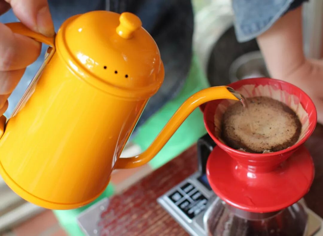 水壺的壺嘴特徵對湍流會產生影響,注水高度以及任何上下運動的注水也會影響湍流大小。你應該避免上下運動的注水,你應該嘗試每次從相同的高度注水。我個人喜歡長著長長的、小開口的水壺,因為它能在不攪散咖啡粉的情況下產生大量湍流。