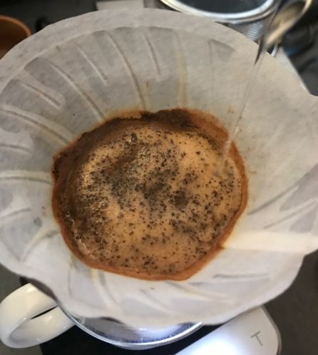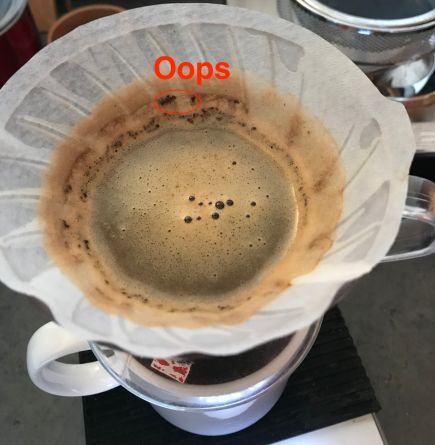 在V60濾杯中,咖啡粉床中心區容易形成一個“乾燥區”。我在網上看到一些咖啡師在注水前用手指在咖啡粉床中心挖一個小坑來。我還沒有做足夠的實驗來確定它是否有用,但我認為有很好的理由認為它可能有用,而且很容易做到。